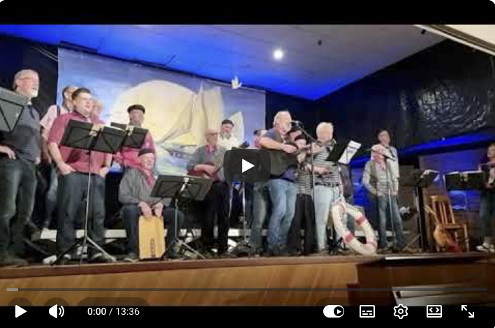 Unter der Leitung von “Käpt’n” Inge Nickel mit ihrem Akkordeon, instrumental unterstützt von Gitarre, Mandoline, Banjo, Mundharmonika, Flöte, Baritonhorn und Teekisten-Bass besingen eine Mannschaft gestandener Seebären mehrstimmig den Traum von der Weite der Meere.